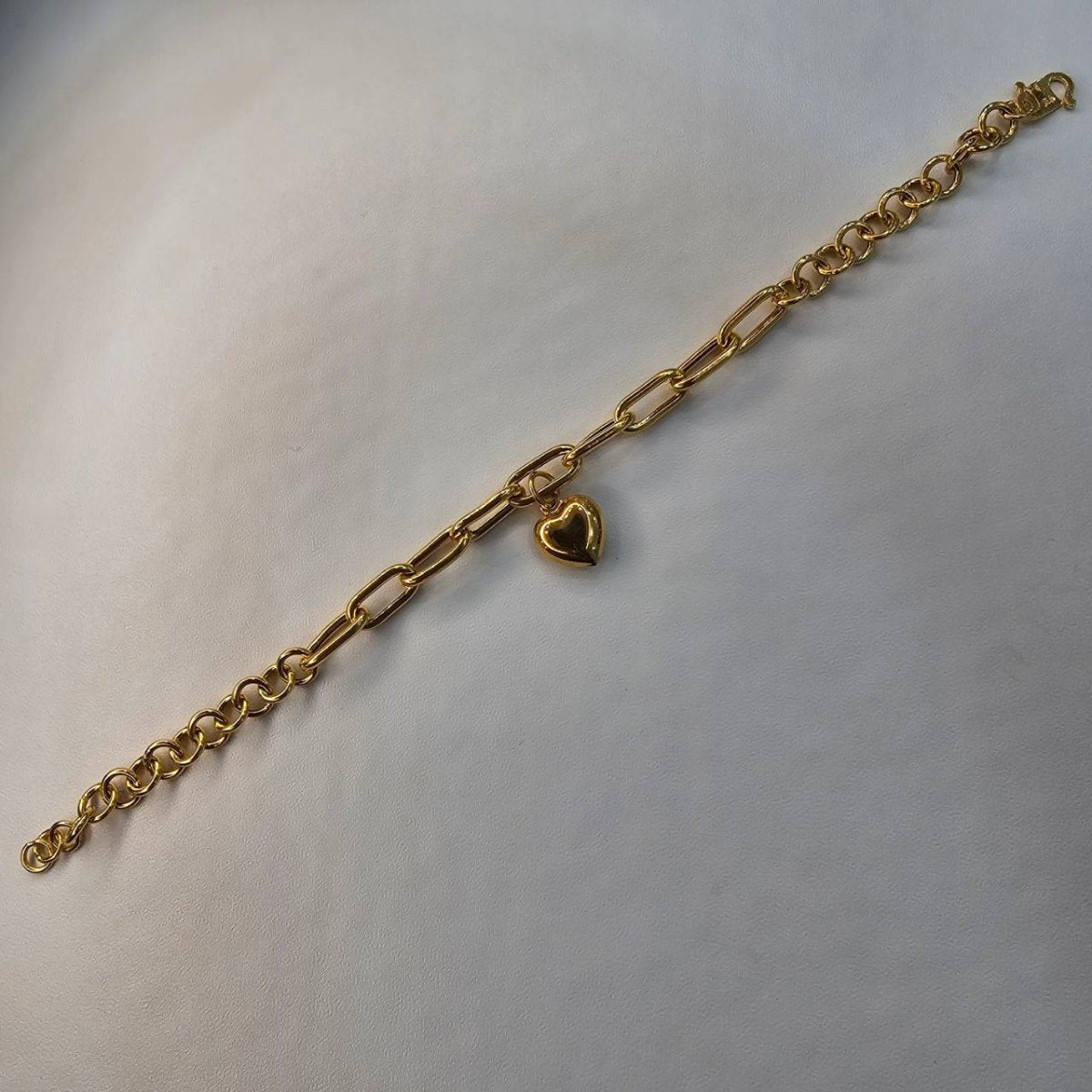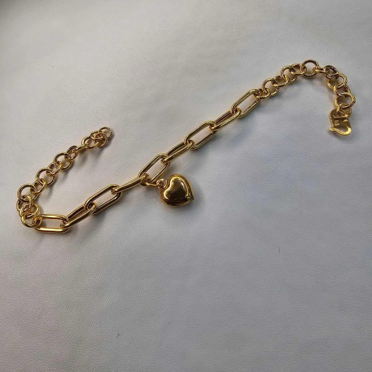 22k / 916 Gold Link Bracelet with Dangling Heart Simple and light
